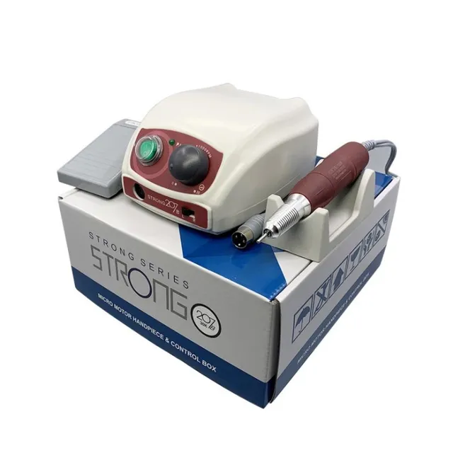 دستگاه سوهان برقی استرانگ مدل 207b یکی از قدرتمند ترین و حرفه ای ترین دستگاه های سوهان برقی موجود در بازار است. سوهان برقی استرانگ 207 با دسته فوق حرفه ای و قدرتمندش سرعتی برابر با 35000 دور در دقیقه را ایجاد می کند. علارقم سرعت بالایی که ایجاد می کند، به هیچ وجه هنگام کار دسته آن داغ نمی کند. دارای پدال مجزا برای کارایی راحت تر برای ناخن کار می باشد. همراه با این سر سوهان یک عدد کیف پارچه ای ، یک عدد پایه دسته سوهان برقی و یک پدال می باشد.
