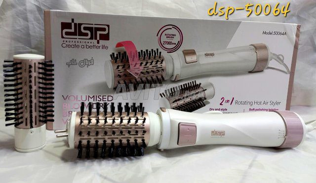 سشوار چرخشی دی اس پی مدل DSP-50064 با داشتن برس های سرامیکی یا پلاستیکی مویی در قطر های مختلف به شما قدرت انتخاب میدهد . استفاده از این دستگاه ها بسیار ساده می باشد و شما میتوانید با چندین بار سعی و خطا در استفاده از آن تبحر پیدا کنید . این دستگاه تخصص ویژه ای در حجیم نمودن مو ها دارد . برای اینکه نتیجه بهتری در استفاده از سشوار چرخشی ببرید، موهای خود را پس از حمام و خشک کردن سطحی سشوار نماید، البته دقت نماید که نباید از مو ها آب بچکد بلکه بهتر است موها تمیز و نمناک باشد