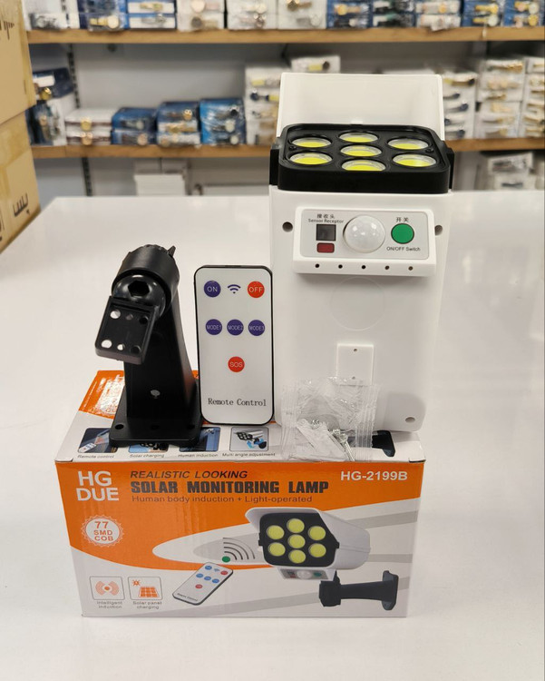 امنیت ظاهری: طرح دوربین مداربسته برای افزایش حس امنیت در فضاهای خارجی با چراغ خورشیدی HG-2199B، روشنایی هوشمند و امن را تجربه کنید!
