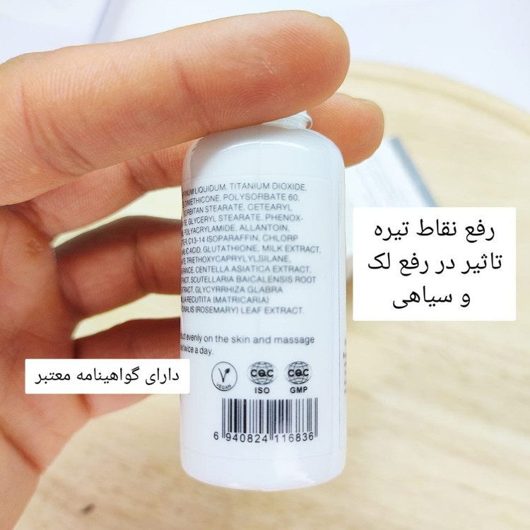 حاوی لایه بردار AHA، ویتامین B3، C، شیر و هیالورونیک اسید